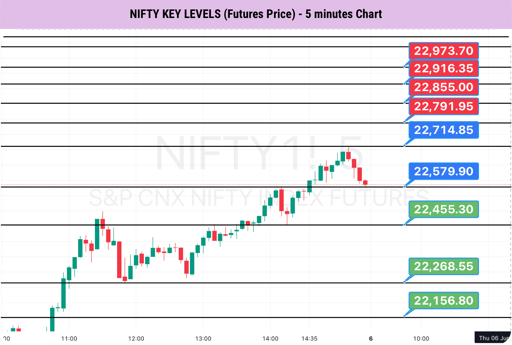 Bullish above 22714 and Bearish below 22579. Please note that these levels are plotted in the Nifty Futures chart. To know how to use the key level system, please check this post.