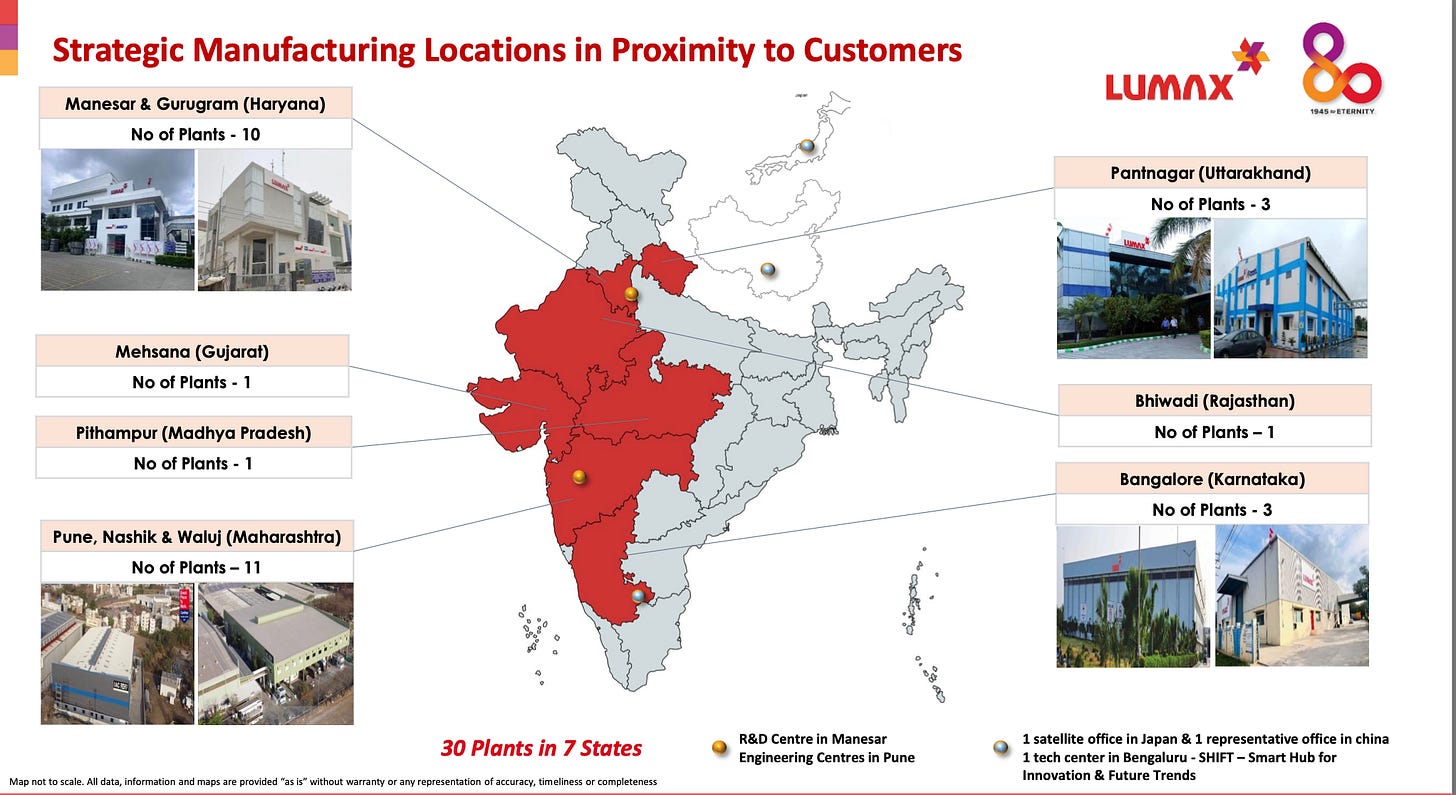 Plants are concentrated near Pune, Manesar, and Bangalore with 10 of 30 plants in Haryana alone. Just-in-time delivery is structurally enabled by geography.