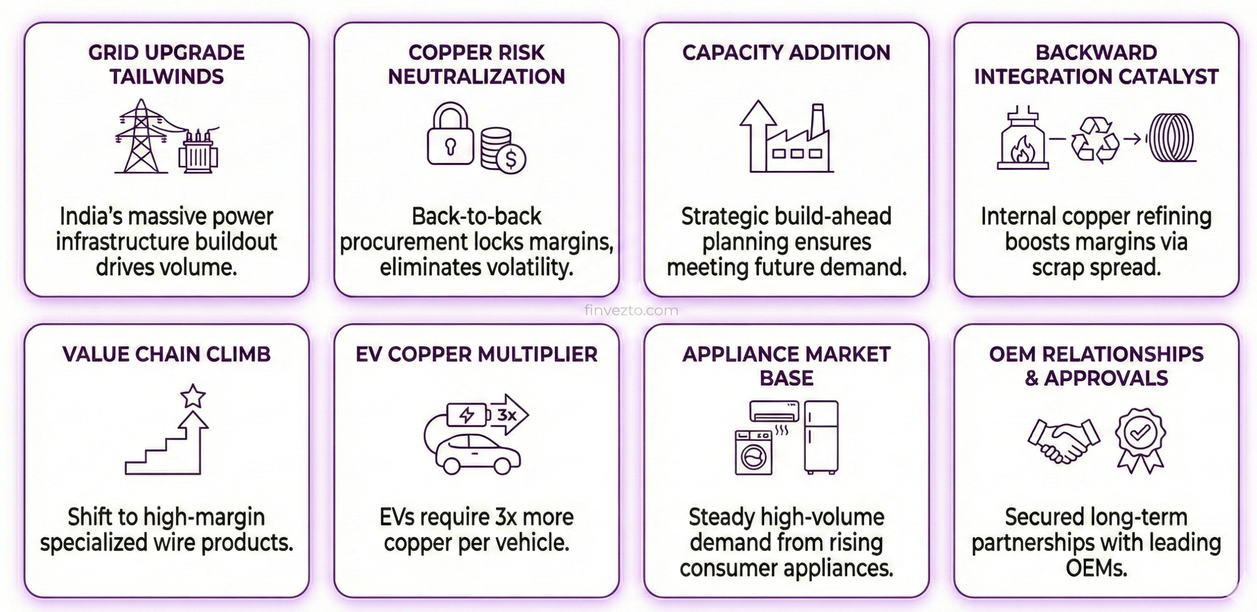 The consumer durables sector provides a steady, high-volume revenue base that balances the lumpy timing of infrastructure projects. India’s rising middle class is the fuel. Every new AC, washing machine, or refrigerator sold contains copper motors wound with wires.