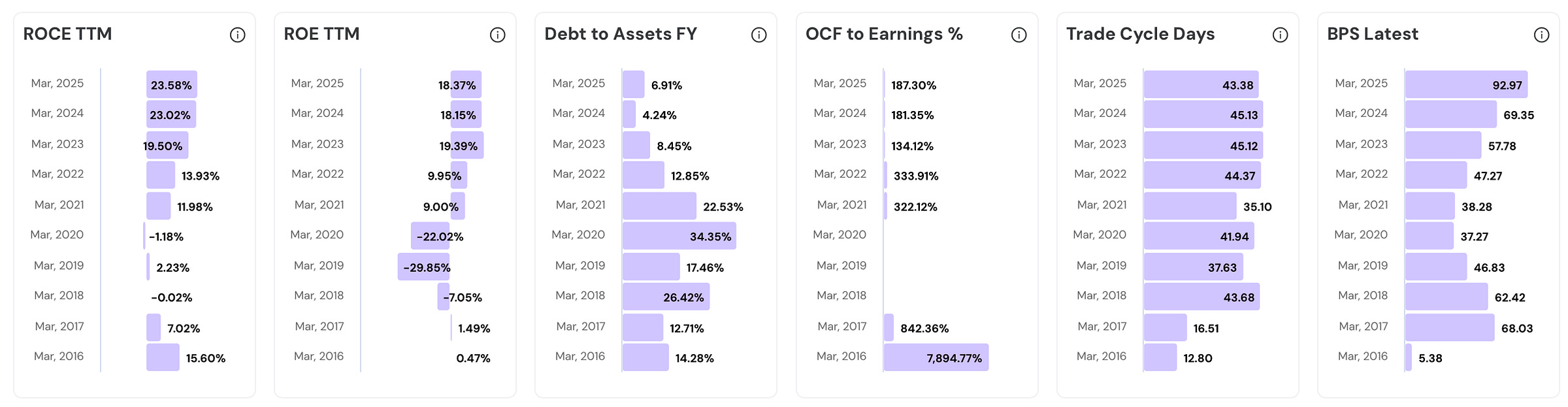 - Operating Profit TTM has grown 6.3x (from ₹42 Cr to ₹265 Cr)