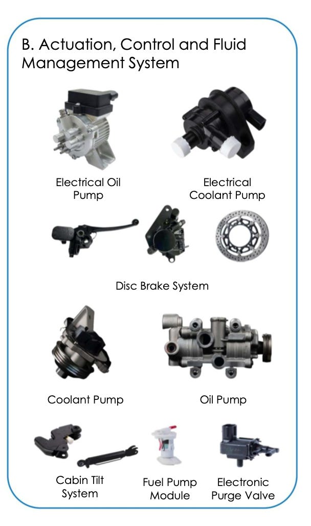 Recently expanded into disc brakes and Battery Management Systems. This extends relevance to both ICE and growing EV markets simultaneously.