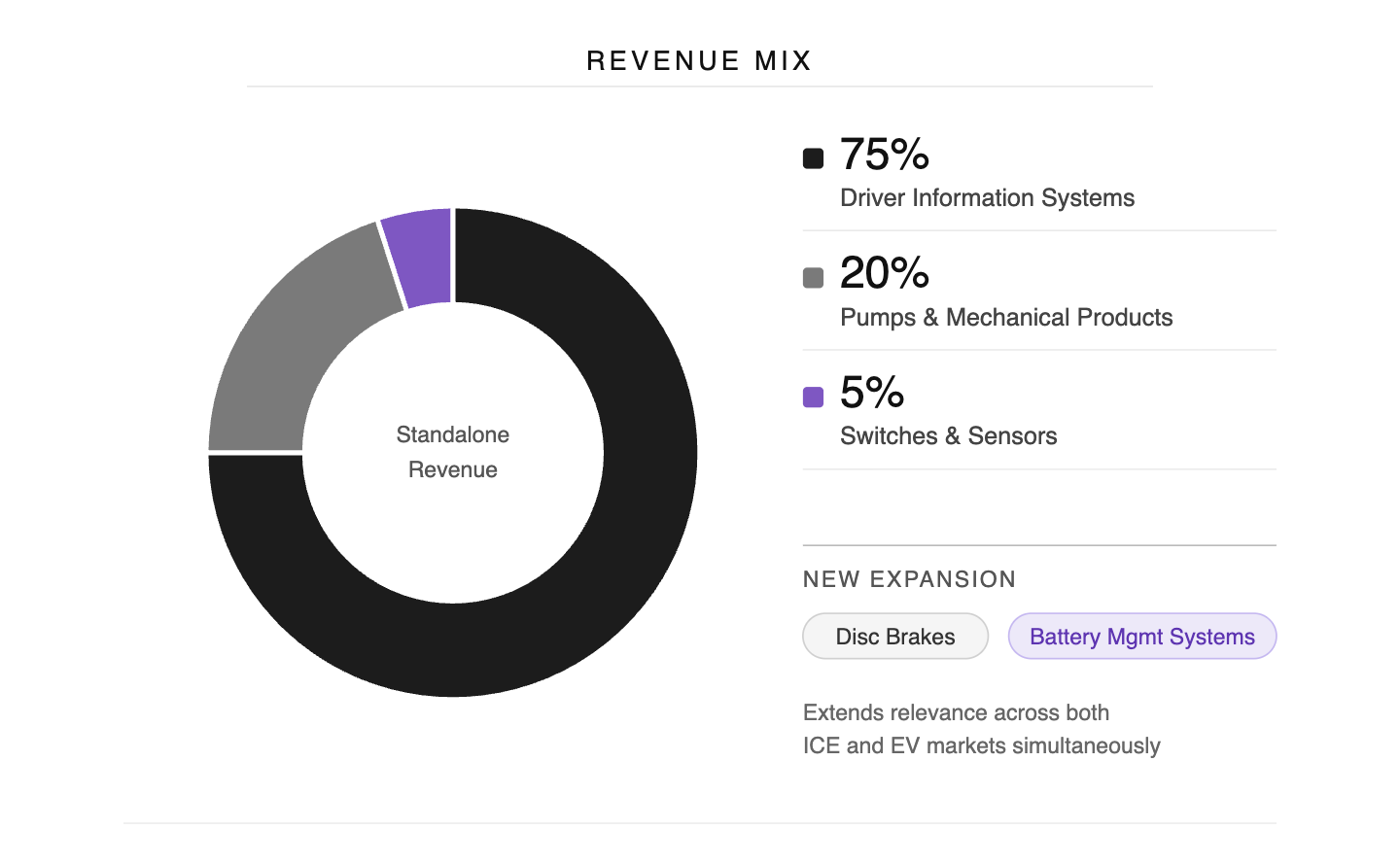 Driver Information Systems contribute 75% of standalone revenue.
