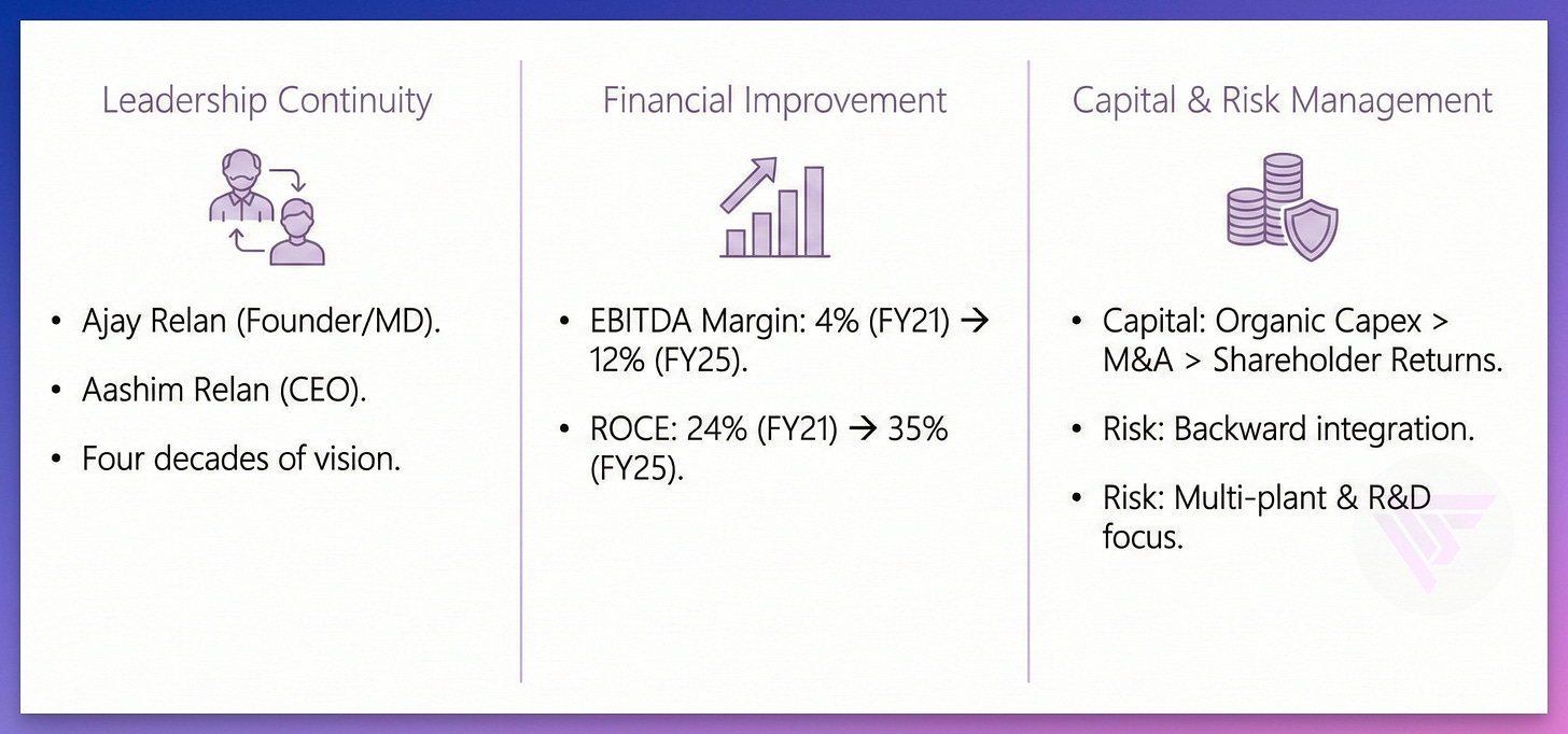Sharda ended FY25 with over ~900 crore in cash, funding expansions from internal accruals rather than borrowing.