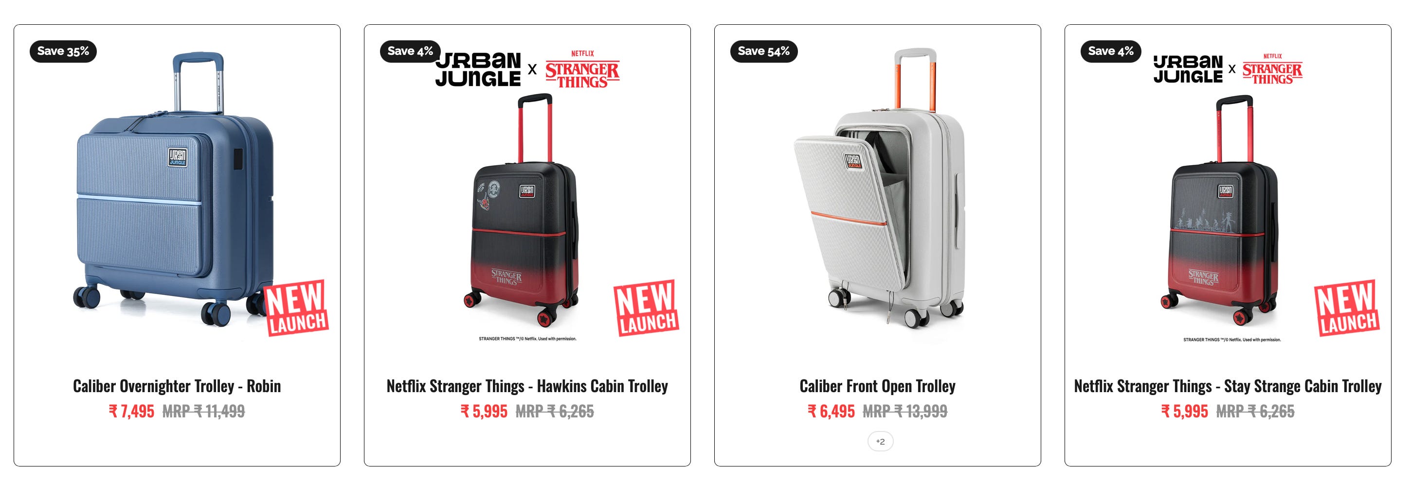 The “Taxi” hard luggage under Urban Jungle uses bold, unconventional surface patterns. In a category where most suitcases look identical, stand-out design drives impulse purchases at retail.