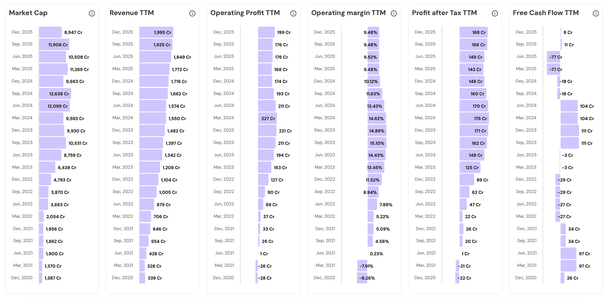 Revenue grew nearly 6x in five years, from ₹339 Cr to ₹1,995 Cr