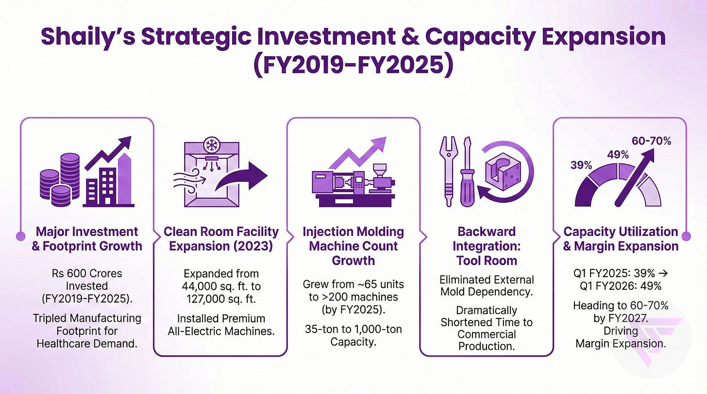 Shaily invested approximately Rs 600 crores between FY2019 and FY2025, effectively tripling manufacturing footprint in anticipation of healthcare segment demand materialization.