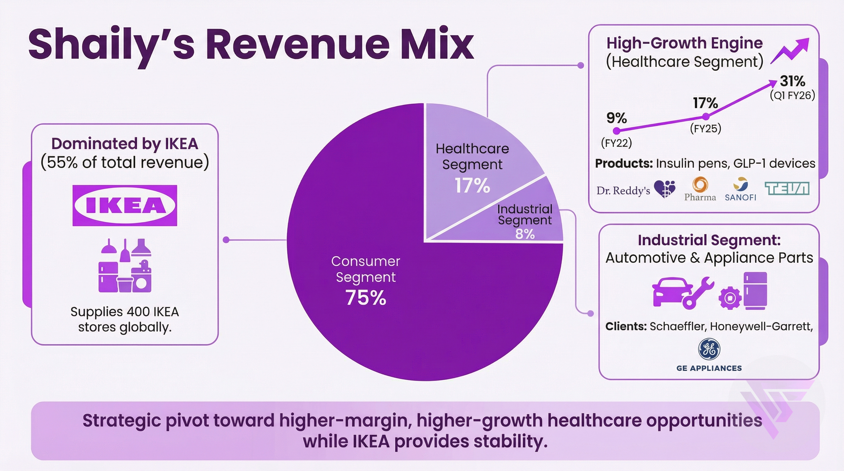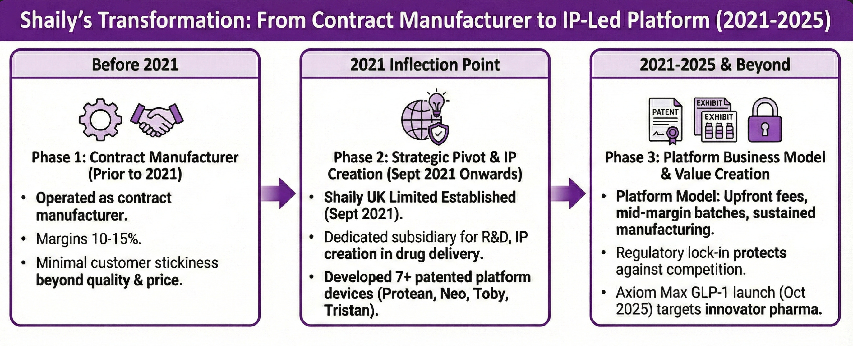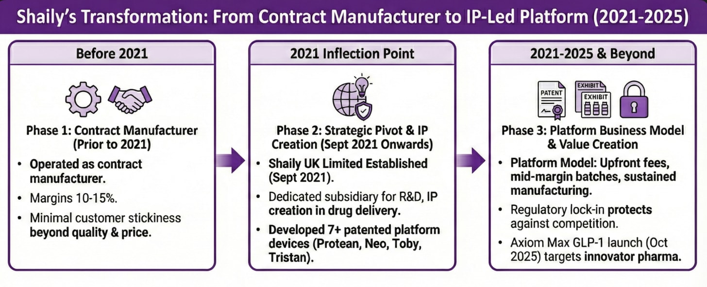 Prior to 2021, Shaily operated as a contract manufacturer earning 10-15% margins with minimal customer stickiness.