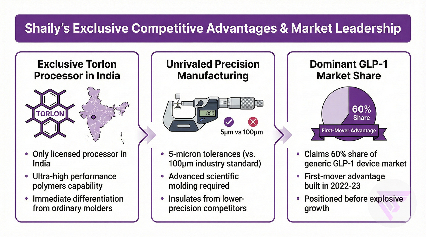Manufacturing with 5-micron tolerances versus industry standard 100 microns requires advanced scientific molding, insulating Shaily from Chinese competitors who cannot demonstrate equivalent precision as of now.