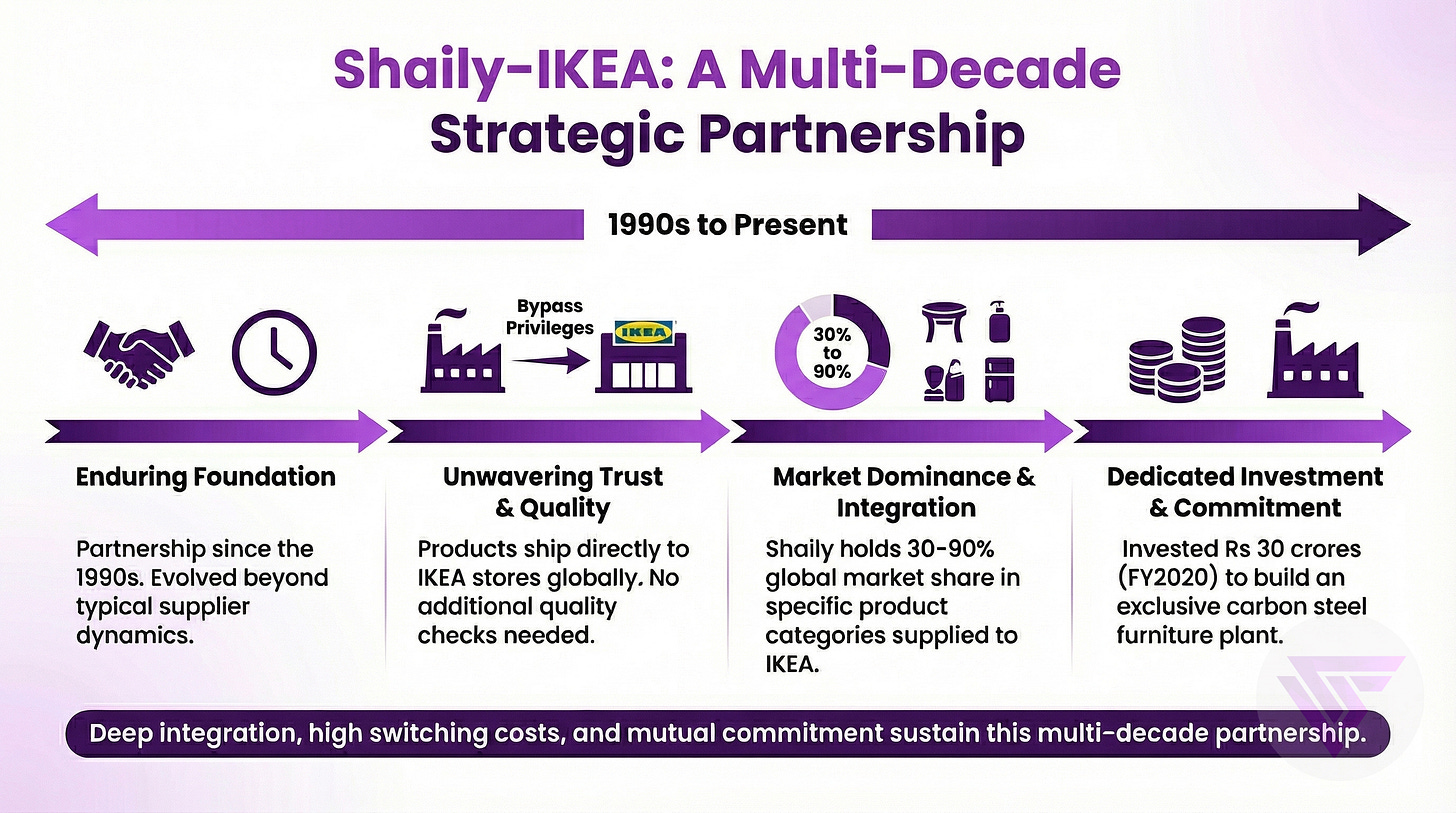 IKEA India (Primary Customer) revenues grew 77% over three years to Rs 1,860 crores in FY2025, with Phase 2 expansion targeting 25 stores initially then doubling count over 12-18 months.