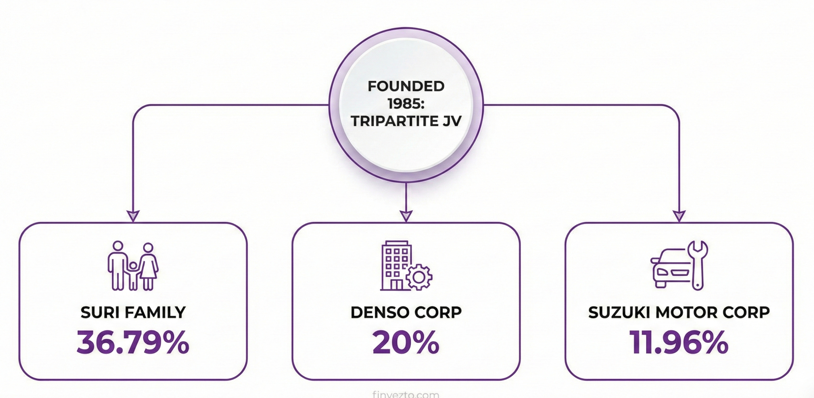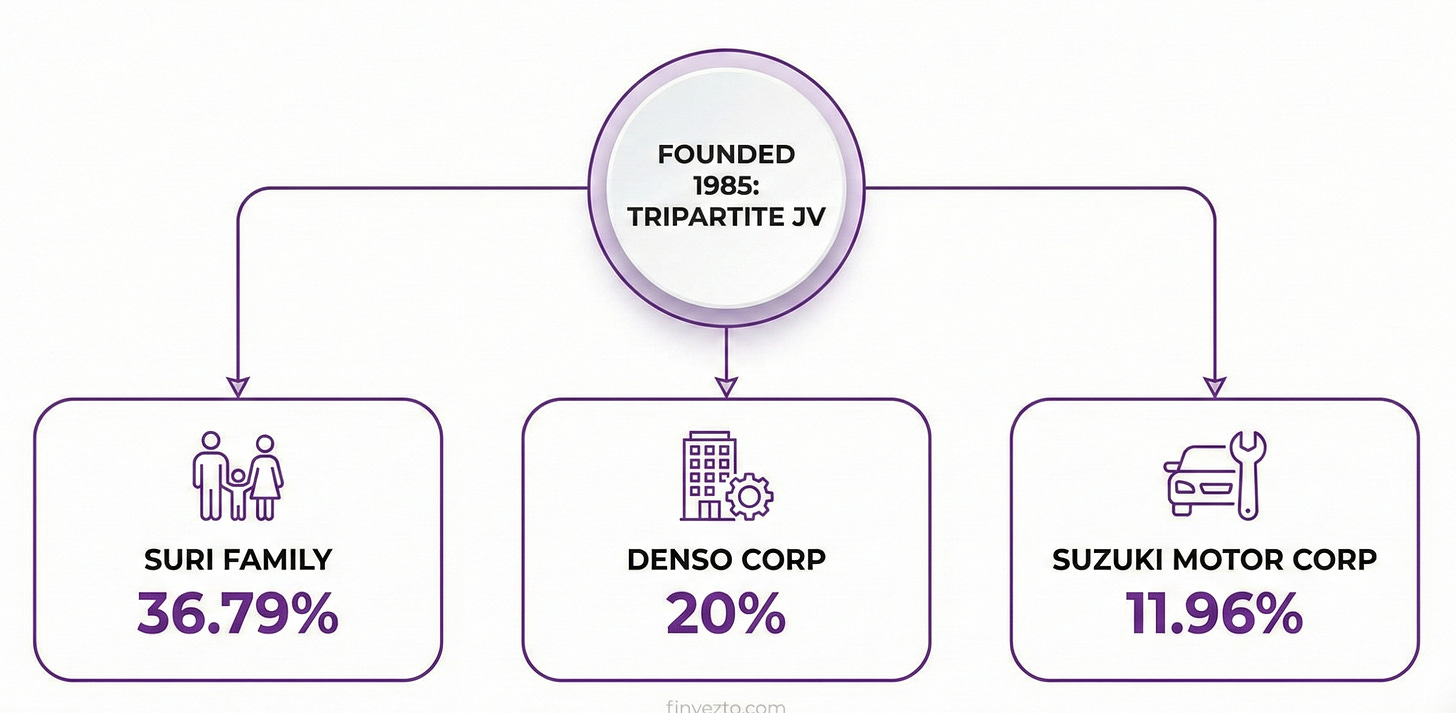 Board representation from both Suzuki Motor Corporation and Denso Corporation ensures strategic alignment with key stakeholders.
