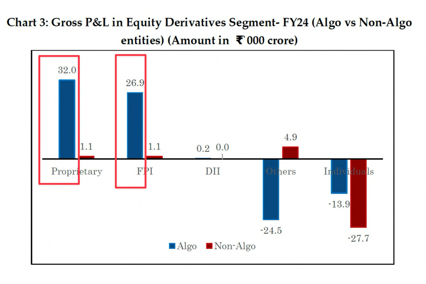 96% of proprietary trader profits in FY24 came from algo trading. For FPIs, that number was 97%. Non-algo profits were marginal for both categories.