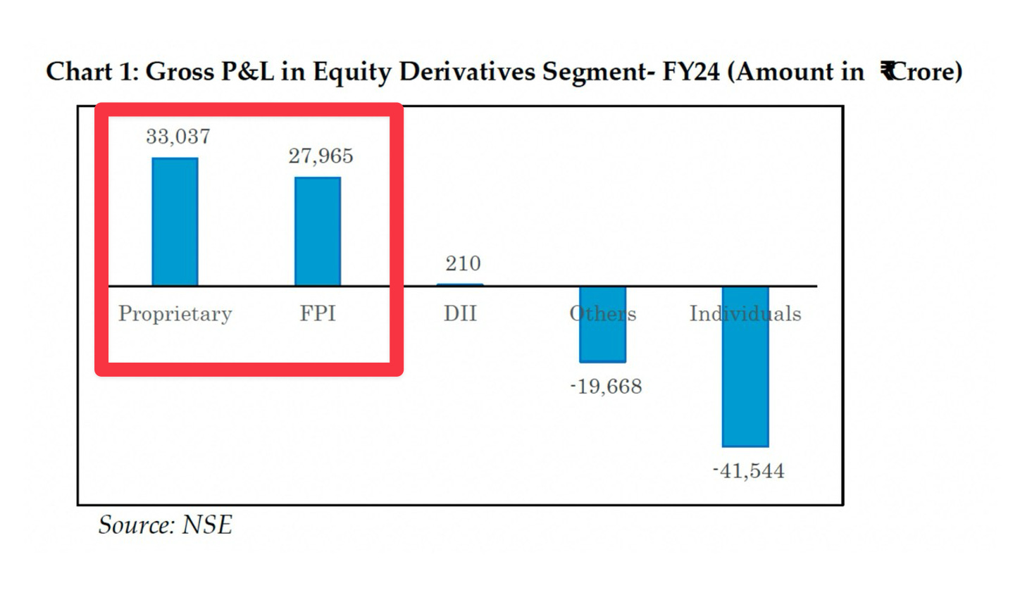 Proprietary traders earned ₹33,037 crore gross in FY24. FPIs earned ₹27,965 crore. Individuals and others collectively lost ₹61,212 crore in the same year.