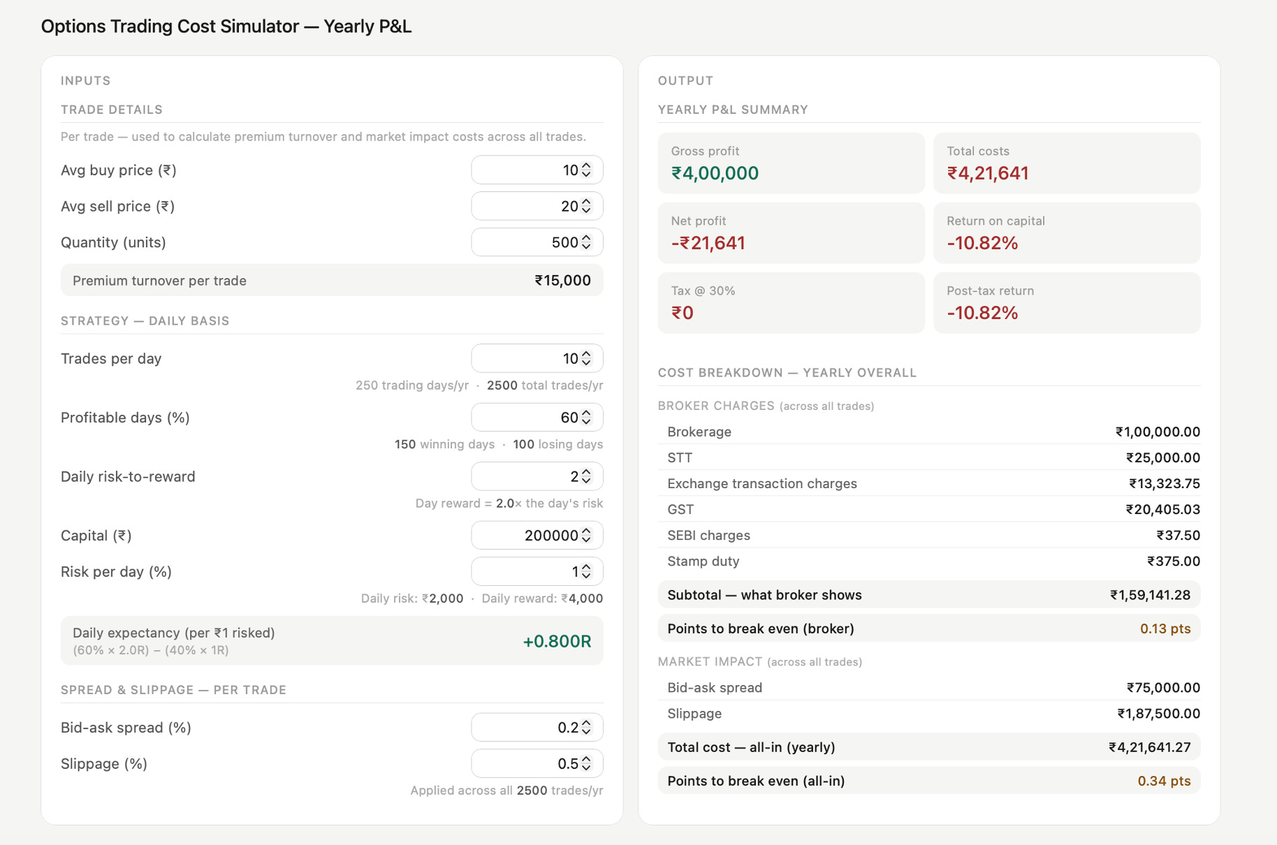 On paper, the gross profit of this strategy is ₹4 lakh per year. The strategy looks excellent before the costs.