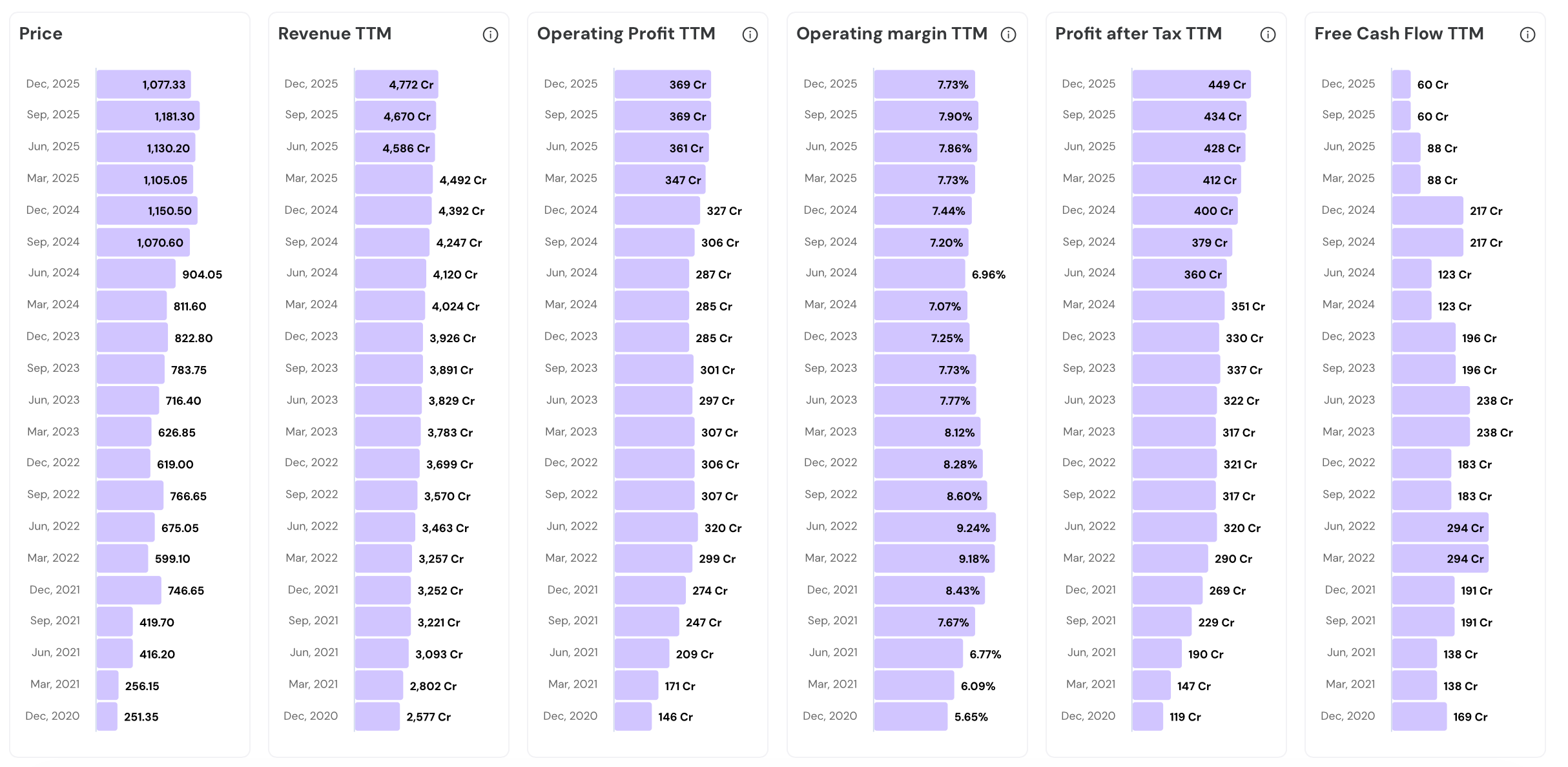 - Revenue has grown 1.9x (from ₹2,577 Cr to ₹4,772 Cr)
