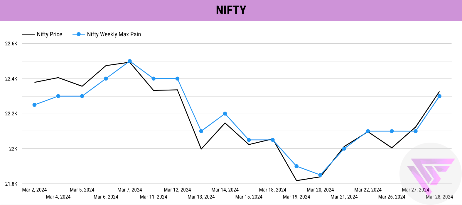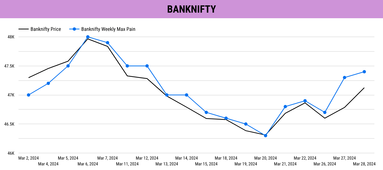 Banknifty: Both Price and Max Pain inched up together suggesting bullishness.