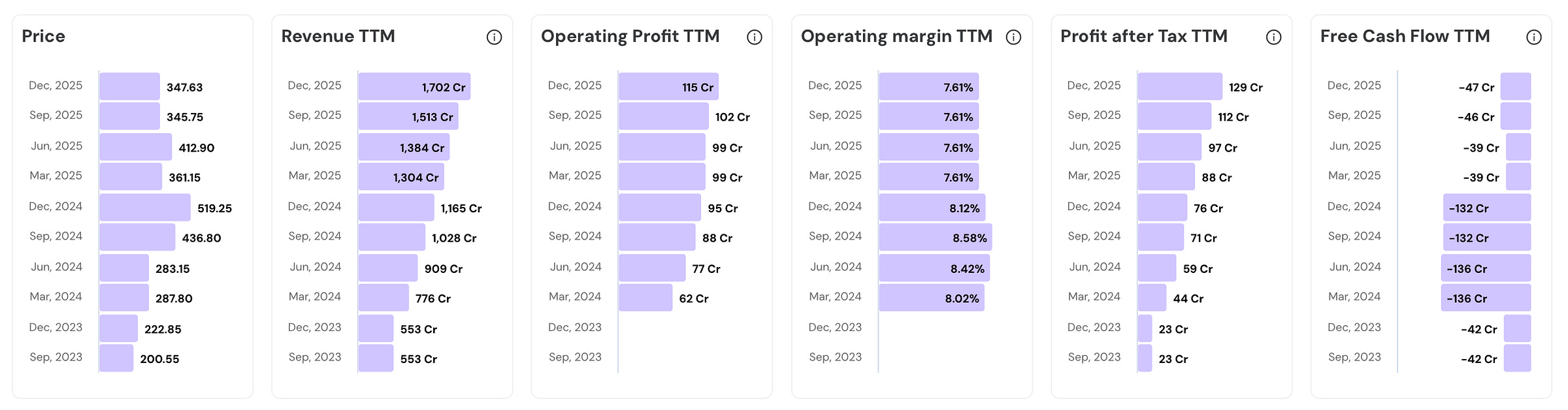 - Revenue TTM has grown 3.1x (from ₹553 Cr to ₹1,702 Cr)