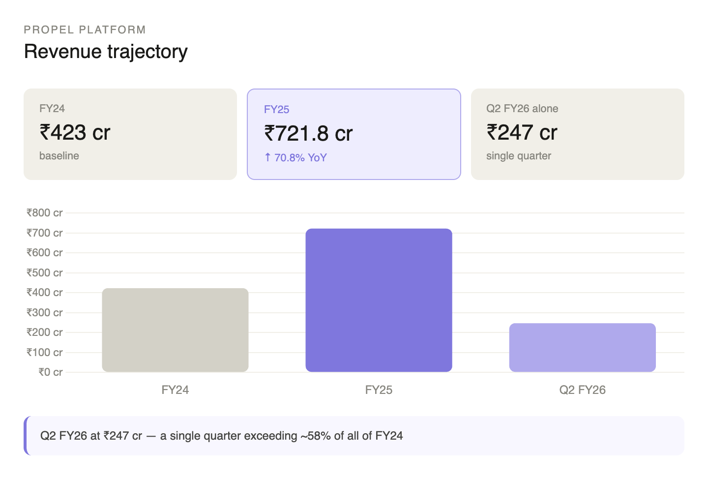 Propel platform revenue reached ₹721.8 crore in FY25, a 70.8% jump over FY24.